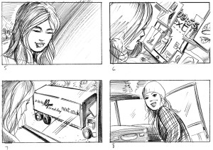Storyboards commissioned by Framestore for the recently-aired Next Homeware television commercials. HB pencil on cartridge paper. For more storyboard art please go here.